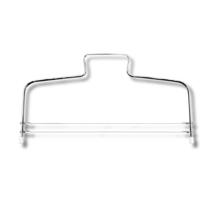 Dvojitá struna na prořezávání dortů umožňuje snadné a přesné rozdělení korpusu na rovnoměrné vrstvy.Dvojitá struna na prořezávání dortů je praktická cukrářská pomůcka pro přesné krájení korpusů na jednotlivé pláty. Díky dvěma strunám můžete dort rozdělit na více vrstev najednou, což šetří čas a zajišťuje rovnoměrnou výšku jednotlivých částí. Struna je vhodná pro domácí i profesionální použití. Pomáhá dosáhnout perfektně rovného řezu bez drolení a deformace korpusu. Délka struny: 29 cm Foto ilustrační EAN: 6916030050646