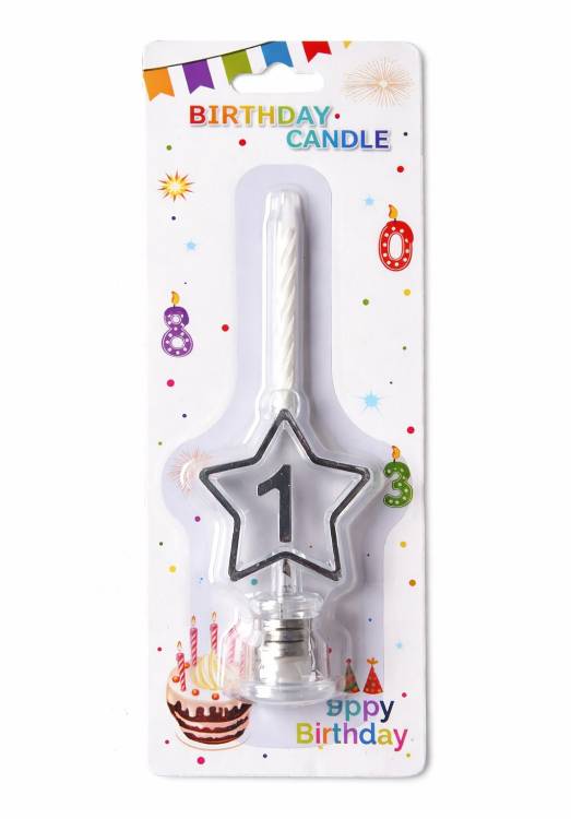 Dortisimo Svíčka bílá s LED stříbrným podstavcem ve tvaru hvězdy číslo 1 - Dortisimo Svíčka bílá s LED stříbrným podstavcem ve tvaru hvězdy číslo 1 z kategorie Heureka.cz | Bydlení a doplňky | Bytové doplňky | Doplňky do kuchyně | Pečení | Dortové svíčky a fontány koupíte na Dortisimo.cz. EAN: 2025000009509