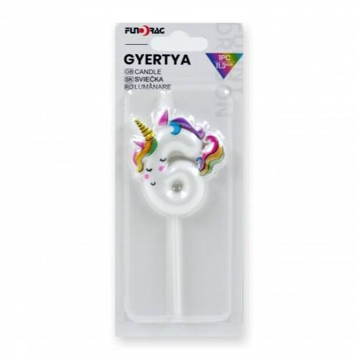 Svíčka číslo 6 růžová s korunkou a glitrem 9,5 cm Svíčka číslo 6 růžová s korunkou a glitrem 9,5 cm