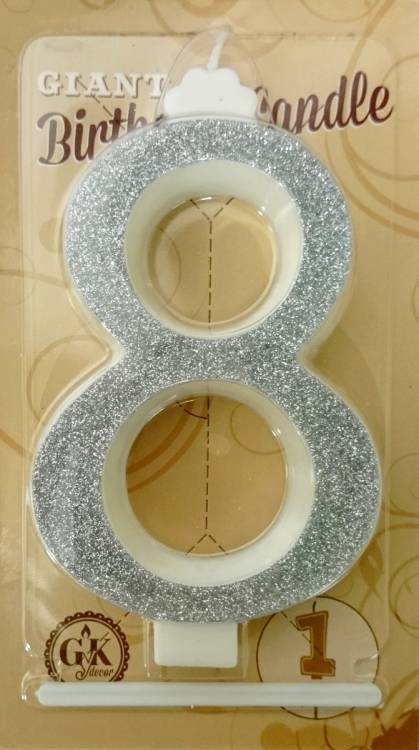 Dortisimo Svíčka velká stříbrná číslo 8 - Dortisimo Svíčka velká stříbrná číslo 8 z kategorie Dortisimo.cz | Potřeby pro párty a oslavy | Svíčky pro párty a oslavy koupíte na Dortisimo.cz. EAN: 5999525064183