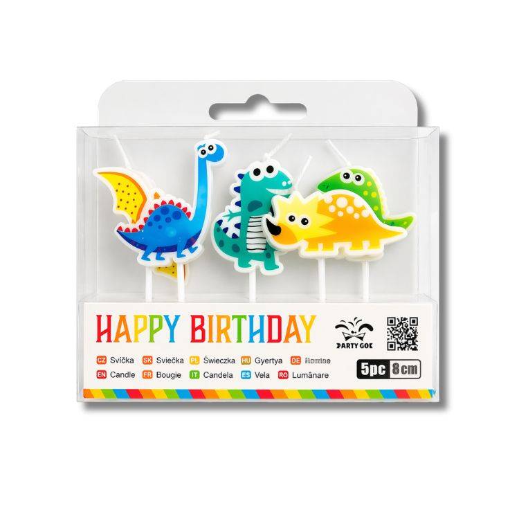 Svíčky s motivem dinosaurů jsou hravou dekorací na dort, která potěší každého malého milovníka prehistorických tvorů.Dortové svíčky s motivem dinosaurů přinesou na každou oslavu dobrodružnou a veselou atmosféru. Barevné provedení a oblíbené dinosauří motivy udělají z narozeninového dortu nepřehlédnutelný střed pozornosti. Svíčky se snadno zapichují do dortu a po zapálení vytvoří kouzelný efekt, který nadchne děti i dospělé. Skvěle se hodí na tematické dinosauří oslavy, ale i jako originální doplněk klasického narozeninového dortu. Výška: 2 - 3,5 cm Foto ilustrační EAN: 8058617585337
