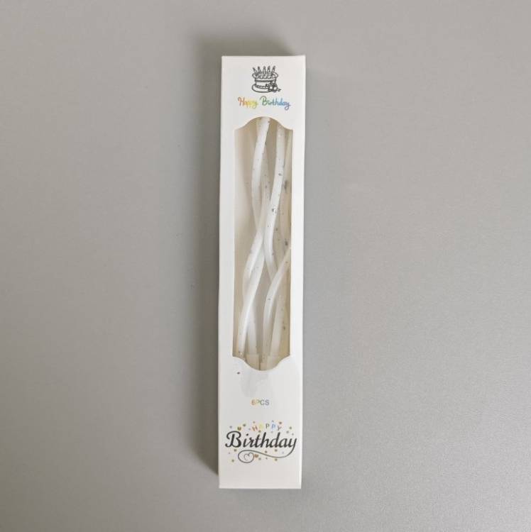 Dortisimo Svíčky spirálové bílé se stříbrným zdobením (6 ks) - Dortisimo Svíčky spirálové bílé se stříbrným zdobením (6 ks) z kategorie Dortisimo.cz | Potřeby pro párty a oslavy | Svíčky pro párty a oslavy koupíte na Dortisimo.cz. EAN: 2024000009120