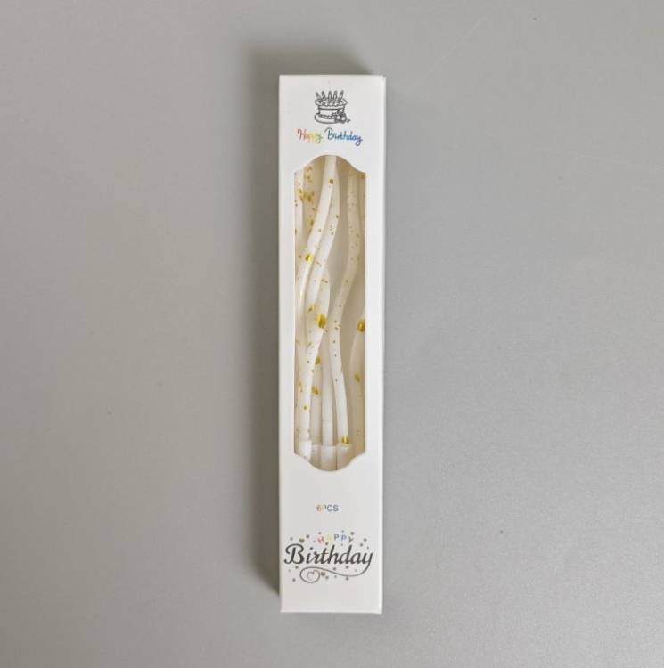 Dortisimo Svíčky spirálové bílé se zlatým zdobením (6 ks) - Dortisimo Svíčky spirálové bílé se zlatým zdobením (6 ks) z kategorie Dortisimo.cz | Potřeby pro párty a oslavy | Svíčky pro párty a oslavy koupíte na Dortisimo.cz. EAN: 2024000009137