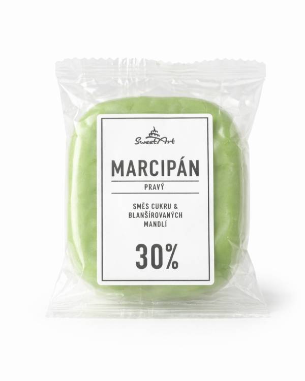 Pravý marcipán je potahovací a modelovací hmota, která je tvořena směsí cukru a blanšírovaných mandlí. Vyznačuje se lahodnou chutí a jeho konzistence zaručuje snadné zpracování.Pravý marcipán je cukrářská hmota, původem z Orientu, odkud byla dovezena nejprve do Španělska a Portugalska. Později se přes Benátky rošířila dále do Evropy. Použití: Používá se zejména jako modelovací hmota pro výrobu ozdob, figurek, květin a dalších dekorací na dorty a zákusky. Dále ji lze využít na potahování dortů, ale také jako součást jejich náplní nebo na výrobu cukroví. Pravý marcipán je vždy barvy slonové kosti. Čím je v něm větší podíl mandlí, tím je kvalitnější a tmavší. Na vzduchu začne marcipán pomalu vysychat a tuhnout. Proto ho doporučujeme skladovat dobře zabalený v potravinářské fólii a v uzavřené nádobě na tmavém místě. Vyrobené ozdoby sušíme při pokojové teplotě. Složení: cukr, mandle (30%), glycerin E422, glukózový sirup, aroma, sorban draselný E202, barviva E110, E122, E133 Nutriční hodnoty ve 100 g: energie 1910 kJ/456 kcal, tuky 10,5 g (z toho nasycené 1 g), sacharidy 85 g (z toho cukry 81 g), bílkoviny 6 g, sůl 0,1 g EAN: 5999578440880