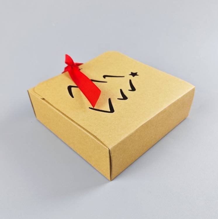 Dortisimo Vánoční krabička kraftová se stuhou Stromeček (16 x 16 x 5 cm)