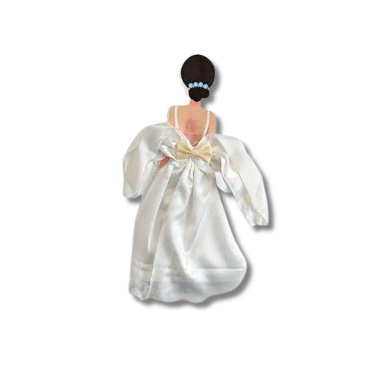 Zápich do dortu s motivem nevěsty zezadu je elegantní dekorace, která dodá svatebnímu dortu romantický a stylový vzhled.Zápich do dortu nevěsta zezadu je jemná a vkusná dekorace, ideální pro svatební dorty, zásnubní oslavy nebo rozlučky se svobodou. Silueta nevěsty zachycená zezadu působí velmi elegantně a dodává dortu moderní i romantický nádech. Zápich stačí jednoduše zapíchnout do dortu, kde okamžitě vytvoří výrazný vizuální prvek bez nutnosti složitého zdobení. Skvěle se kombinuje s dalšími dekoracemi, jako jsou květiny, perličky nebo jemné krajkové detaily. Výška: 25 cm Foto ilustrační EAN: 8058617726310