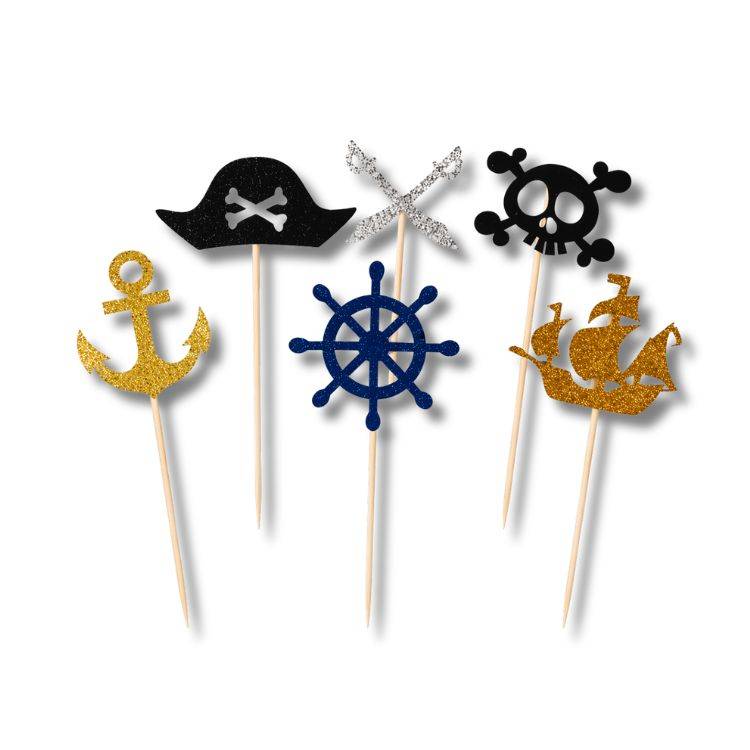 Zápich do dortu nebo muffinů s motivem pirátů je tematická dekorace, která promění každý dort v dobrodružnou pirátskou oslavu.Zápich do dortu s pirátským motivem je ideální doplněk pro narozeninové dorty malých dobrodruhů. Díky výraznému designu s pirátskou tematikou dodá dortu hravý a originální vzhled, který zaujme na první pohled. Zápich se snadno zapichuje do dortu a okamžitě vytvoří dominantní dekoraci. Skvěle se hodí na tematické oslavy ve stylu pirátů, ale i jako zpestření klasického narozeninového dortu. Výška: 14 cm (6,5 cm bez zapichovací části) Foto ilustrační EAN: 8058617797822