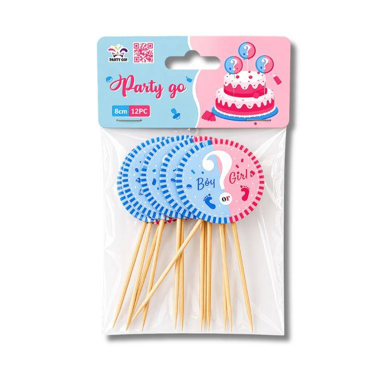 Zápich do dortu nebo muffinů „Boy or Girl“ v růžovo-modrém provedení je ideální dekorací pro gender reveal oslavy a baby shower.Stylový zápich do dortu nebo muffinů s nápisem „Boy or Girl“ v kombinaci růžové a modré barvy je perfektní volbou pro odhalení pohlaví miminka nebo tematickou baby shower. Jemné barevné ladění dodá dortu hravý a zároveň elegantní vzhled. Zápich se snadno zapichuje do dortu a okamžitě vytvoří výrazný středový prvek celé dekorace. Skvěle vynikne na jednobarevném i tematicky zdobeném dortu, například s kombinací růžové a modré polevy. Výška: 10,8 cm (4 cm bez zapichovací části) Foto ilustrační EAN: 8058617797563