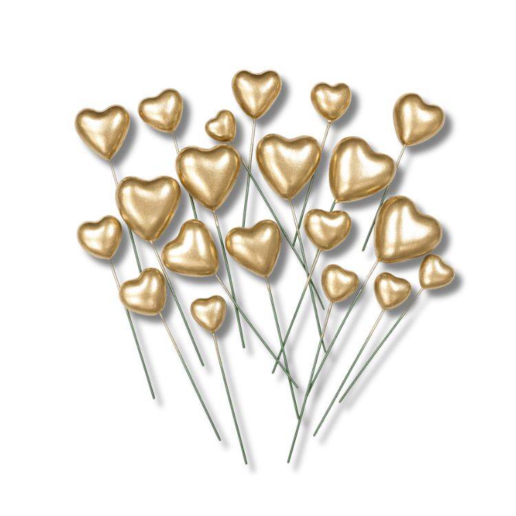 Zápich do dortu se zlatými srdíčky v různých velikostech. Elegantní dekorace pro romantické i slavnostníDodejte dortu jemný a romantický vzhled pomocí zápichu se zlatými srdíčky v různých velikostech. Zlaté provedení působí luxusně a krásně vynikne na světlých i tmavších dortech. Různě velká srdíčka vytváří zajímavý vizuální efekt a dodají dortu hloubku i originalitu. Zápich je ideální pro narozeniny, svatby, výročí, Valentýn nebo jiné slavnostní příležitosti. Rozměry: 1,7 - 3,5 cm EAN: 6900000905210
