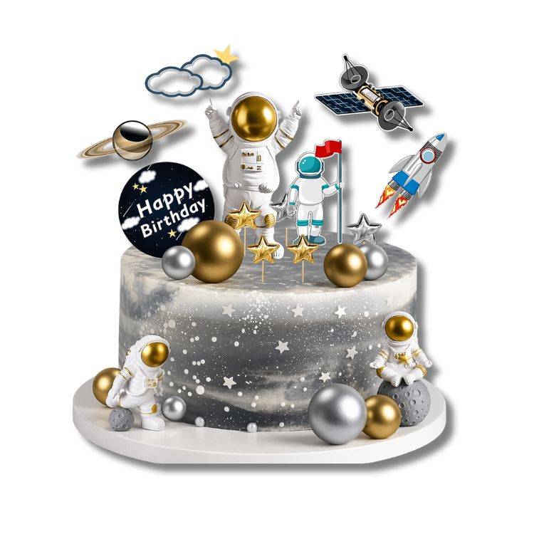 Zápich do dortu s motivem vesmíru se zlatými a stříbrnými koulemi je stylová dekorace, která dodá dortu kouzelný a elegantní vzhled.Originální zápich do dortu s vesmírným motivem přináší do vašich dezertů nádech tajemna a fantazie. Kombinace zlatých a stříbrných koulí připomíná planety a hvězdy, díky čemuž vytvoříte efektní a moderní dekoraci vhodnou pro dětské i dospělé oslavy. Zápich se snadno zapichuje do dortu, cupcakes i dalších dezertů a během chvíle vytvoří výrazný vizuální prvek bez nutnosti složitého zdobení. Skvěle se hodí pro tématické party, narozeniny i speciální příležitosti. Elegantní barevné provedení ve zlaté a stříbrné barvě se dobře kombinuje s různými styly dortů – od minimalistických až po bohatě zdobené. Sada obsahuje: 22 ks Foto ilustrační EAN: 6983730906054