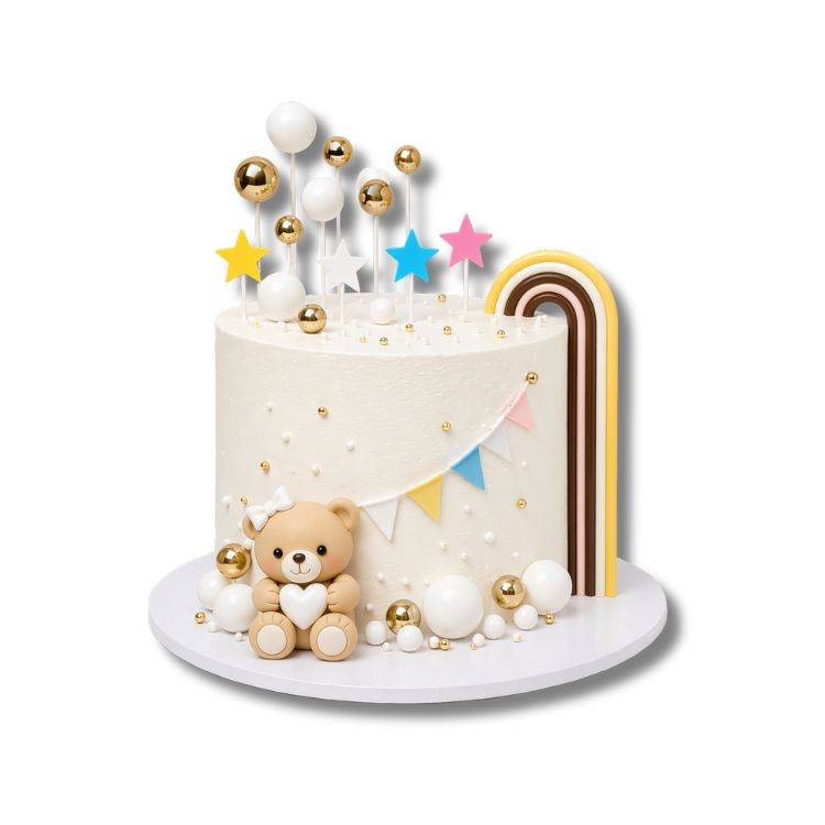 Zápich do dortu s motivem duhy, hvězd a barevných koulí pro snadné a efektní zdobení dortů na narozeniny i dětské oslavy.Vytvořte během chvilky krásně ozdobený dort s tímto dekorativním zápichem s motivem duhy, hvězd a barevných koulí. Kombinace jemných i výrazných barev dodá dortu hravý a moderní vzhled, který se skvěle hodí na narozeninové oslavy, baby shower nebo tematické párty. Zápichy stačí jednoduše zapíchnout do hotového dortu – bez složitého zdobení tak dosáhnete profesionálního efektu. Díky různým velikostem a tvarům vytvoříte na dortu zajímavou kompozici a originální vzhled. Sada obsahuje: 26 ks Foto ilustrační EAN: 8804670906639