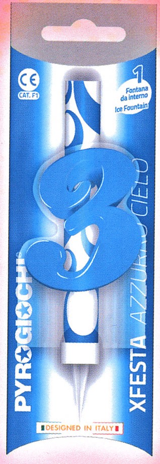 Dortová fontána číslo 3 modrá Rozměr fontány : výška 12 cm + 2,5 cm zápich Rozměr čísla : výška 6 cm Fontánu stačí zapíchnout do dortu špičkou a horní okraj zapálit. Fontána vytvoří efekt zářících a chrlících jisker. Fontány vytvářejí jedinečnou atmosféru. Fontány se objevily na našem trhu nedávno. Ale ihned si získaly velkou oblibu. Různé možnosti využití a designu dělají z tohoto produktu skvělý doplněk každé oslavy. Na dětskou oslavu můžete využít obyčejné fontány s disney motivem. Kdyby jste chtěli svoje děti potěšit ještě více, můžete k těmto fontánam ještě přikoupit hrající fontánu se svíčkami. Pro větší oslavence se určite hodí fontána s číslovkou narozenin. Jako další doplňky můžete využít "vystřelovací konfety". Pyrotechnika 1 kategorie. Doba hoření fontány je 50 sekund.