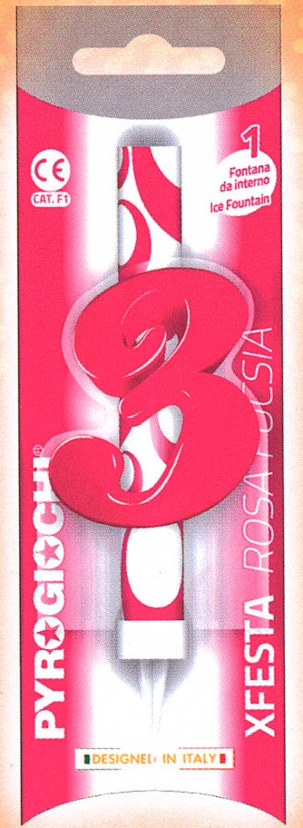 Dortová fontána číslo 3 růžová Rozměr fontány : výška 12 cm + 2,5 cm zápich Rozměr čísla : výška 6 cm Fontánu stačí zapíchnout do dortu špičkou a horní okraj zapálit. Fontána vytvoří efekt zářících a chrlících jisker. Fontány vytvářejí jedinečnou atmosféru. Fontány se objevily na našem trhu nedávno. Ale ihned si získaly velkou oblibu. Různé možnosti využití a designu dělají z tohoto produktu skvělý doplněk každé oslavy. Na dětskou oslavu můžete využít obyčejné fontány s disney motivem. Kdyby jste chtěli svoje děti potěšit ještě více, můžete k těmto fontánam ještě přikoupit hrající fontánu se svíčkami. Pro větší oslavence se určite hodí fontána s číslovkou narozenin. Jako další doplňky můžete využít "vystřelovací konfety". Pyrotechnika 1 kategorie. Doba hoření fontány je 50 sekund.