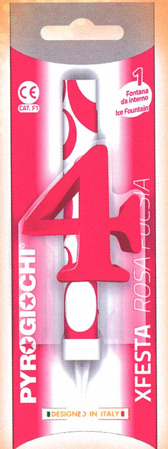 Dortová fontána číslo 4 růžová Rozměr fontány : výška 12 cm + 2,5 cm zápich Rozměr čísla : výška 6 cm Fontánu stačí zapíchnout do dortu špičkou a horní okraj zapálit. Fontána vytvoří efekt zářících a chrlících jisker. Fontány vytvářejí jedinečnou atmosféru. Fontány se objevily na našem trhu nedávno. Ale ihned si získaly velkou oblibu. Různé možnosti využití a designu dělají z tohoto produktu skvělý doplněk každé oslavy. Na dětskou oslavu můžete využít obyčejné fontány s disney motivem. Kdyby jste chtěli svoje děti potěšit ještě více, můžete k těmto fontánam ještě přikoupit hrající fontánu se svíčkami. Pro větší oslavence se určite hodí fontána s číslovkou narozenin. Jako další doplňky můžete využít "vystřelovací konfety". Pyrotechnika 1 kategorie. Doba hoření fontány je 50 sekund.
