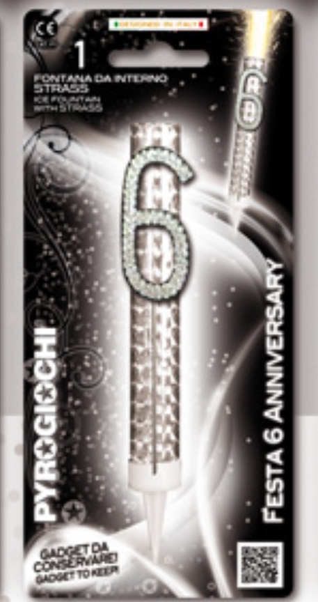 Dortová fontána číslo 6 Rozměr fontány : výška 12 cm + 2,5 cm zápich Rozměr čísla : výška 5 cm Doba hoření : 50 sec. Elegantní dortová fontána číslo 6 se štrasovým designem. Narozeninovou oslavu doporučujeme doplnit o stříbrné narozeninové dekorace, vystřelovací konfety popř. létajícím balónky s heliem. Krásný doplňkem můžou být fóliové balónky čísla anebo fóliové balónky s českým nápisem. Nezapomeňte, že si u nás můžete objednat balónky s fotkou oslavence anebo narozeninové balónky s nápisem dle Vašeho přání.