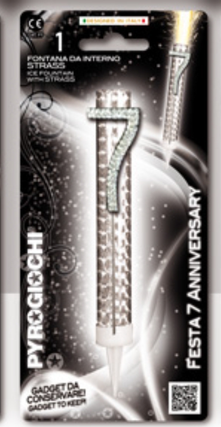 Dortová fontána číslo 7 Rozměr fontány : výška 12 cm + 2,5 cm zápich Rozměr čísla : výška 5 cm Doba hoření : 50 sec. Elegantní dortová fontána číslo 7 se štrasovým designem. Narozeninovou oslavu doporučujeme doplnit o stříbrné narozeninové dekorace, vystřelovací konfety popř. létajícím balónky s heliem. Krásný doplňkem můžou být fóliové balónky čísla anebo fóliové balónky s českým nápisem. Nezapomeňte, že si u nás můžete objednat balónky s fotkou oslavence anebo narozeninové balónky s nápisem dle Vašeho přání.