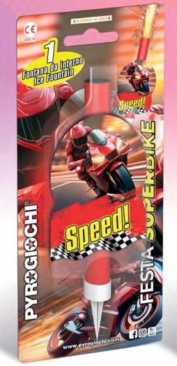Dortová fontána super bike Domácí dortová fontána 1 ks. Fontánu stačí zapíchnout do dortu špičkou a horní okraj zapálit. Fontána vytvoří efekt zářících a chrlících jisker.Fontány vytvářejí jedinečnou atmosféru. Fontány se objevily na našem trhu nedávno. Ale ihned si získaly velkou oblibu. Různé možnosti využití a designu dělají z tohoto produktu skvělý doplněk každé oslavy. Pro větší oslavence se určite hodí fontána s číslovkou narozenin. Jako další doplňky můžete využít "vystřelovací konfety" anebo "ohňostroje". Další informace a videoukázky těchto produktů najdete na www.vystrelovaci-konfety.cz Rozměr fontány : výška 12 cm + 2,5 cm zápich Rozměr obrázku : výška cca 7 cm Doba hoření : 50 sec. Pyrotechnika 1 kategorie.