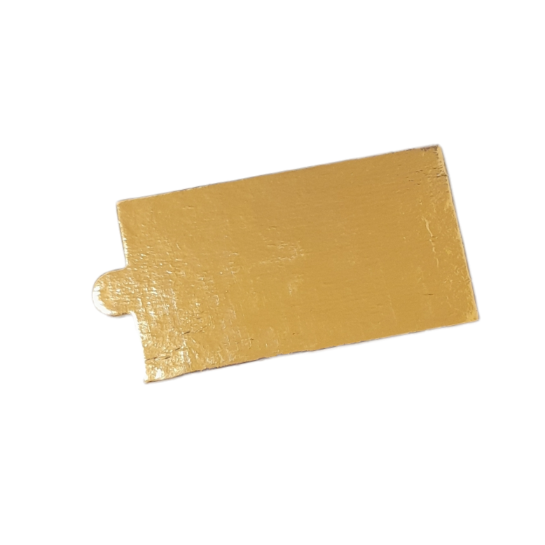 Dortová podložka, lepenka pevná,zlatá, rovný okraj. Podložka je svým rozměrem vhodná zejména na dezerty. Rozměr: 9 x 5 cm. Cena za 1 ks.