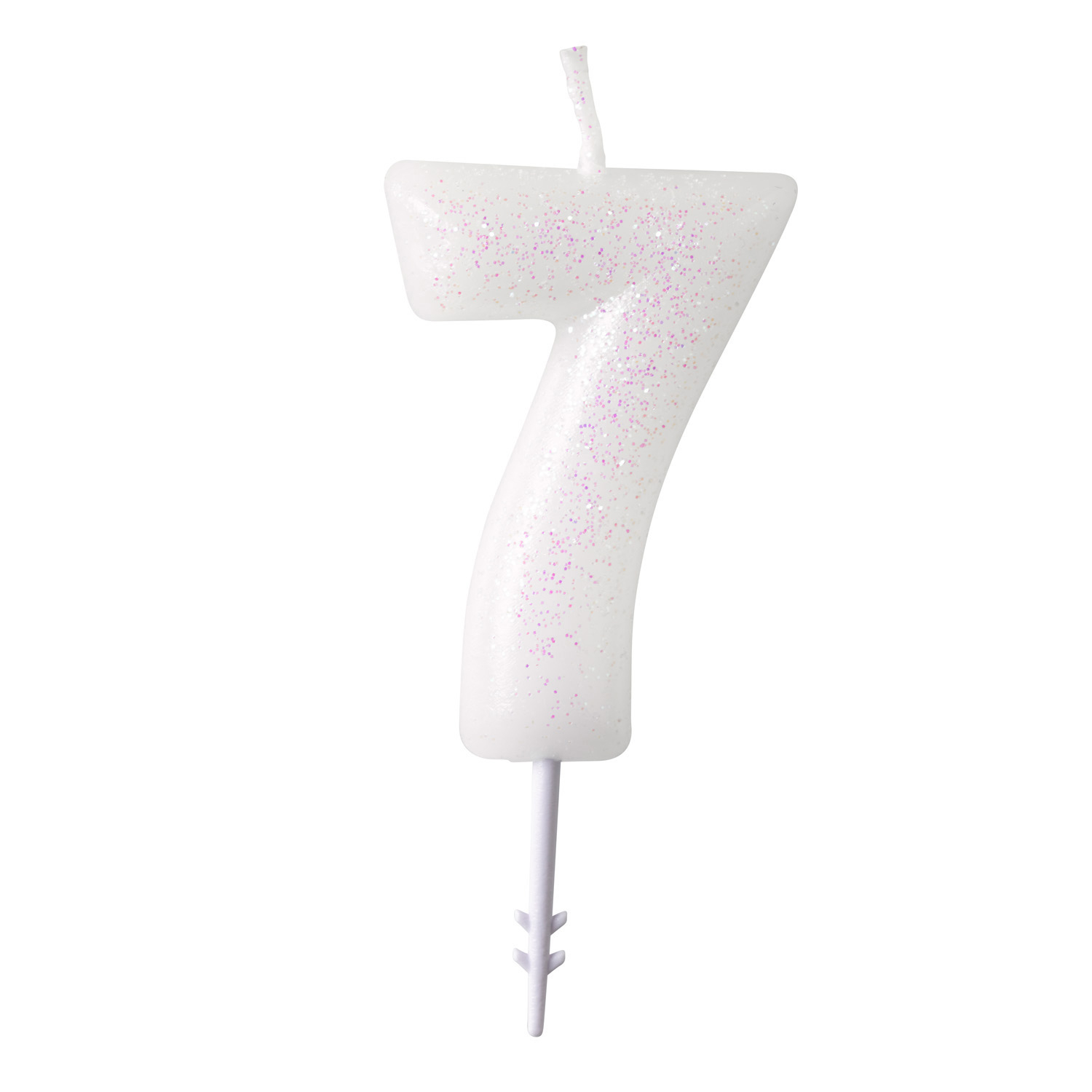 Dortová svíčka číslo 7 bílá s glitry Velikost svíčky je 4,5 cm. Narozeninová oslava bez dortu? To určitě ne! A na každý dort patří dortové svíčky, ať je může oslavenec sfouknout a něco si přát. Proto právě u nás najdete nejširší nabídku narozeninových svíček na trhu. Samozřejmě můžete místo svíčky na dort zvolit dortovou fontánu. Při přípravě slavnostního dortu jistě oceníte nabídku pomůcek na pečení. Pokud máte raději muffiny, můžete si vybrat z mnoha variant košíčků na muffiny. Při výzdobě slavnostního stolu doporučujeme využít stolové šerpy. Jsou opravdu elegantní a v mžiku vykouzlí slavnostní atmosféru. Samozřejmě nesmíte zapomenout na svíčky, ubrousky anebo na kapsy na příbory.