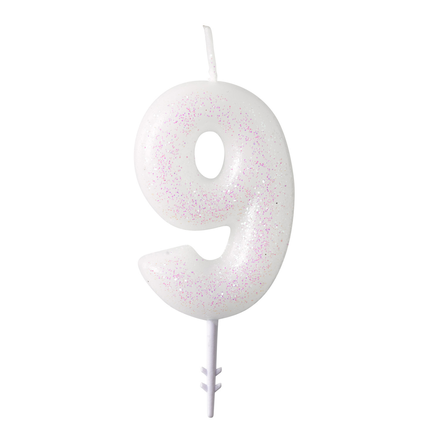 Dortová svíčka číslo 9 bílá s glitry Velikost svíčky je 4,5 cm. Narozeninová oslava bez dortu? To určitě ne! A na každý dort patří dortové svíčky, ať je může oslavenec sfouknout a něco si přát. Proto právě u nás najdete nejširší nabídku narozeninových svíček na trhu. Samozřejmě můžete místo svíčky na dort zvolit dortovou fontánu. Při přípravě slavnostního dortu jistě oceníte nabídku pomůcek na pečení. Pokud máte raději muffiny, můžete si vybrat z mnoha variant košíčků na muffiny. Při výzdobě slavnostního stolu doporučujeme využít stolové šerpy. Jsou opravdu elegantní a v mžiku vykouzlí slavnostní atmosféru. Samozřejmě nesmíte zapomenout na svíčky, ubrousky anebo na kapsy na příbory.