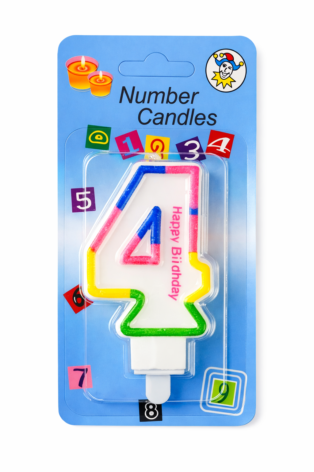 Dortová svíčka duhová č.4, 8,5x4x0,8cm, 1ks