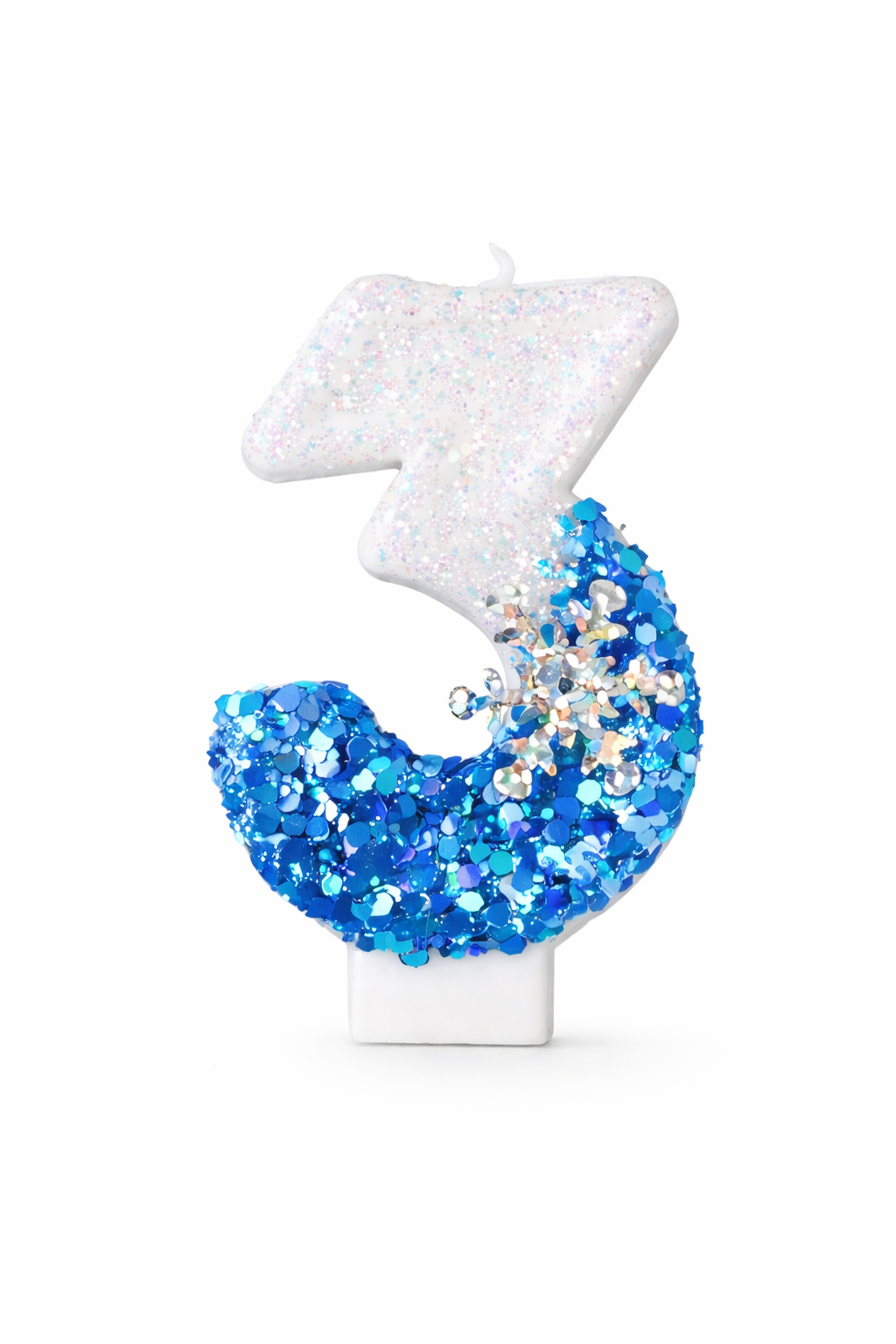 Svíčka číslo 7 stříbrná s glitrem Svíčka číslo 7 stříbrná s glitrem