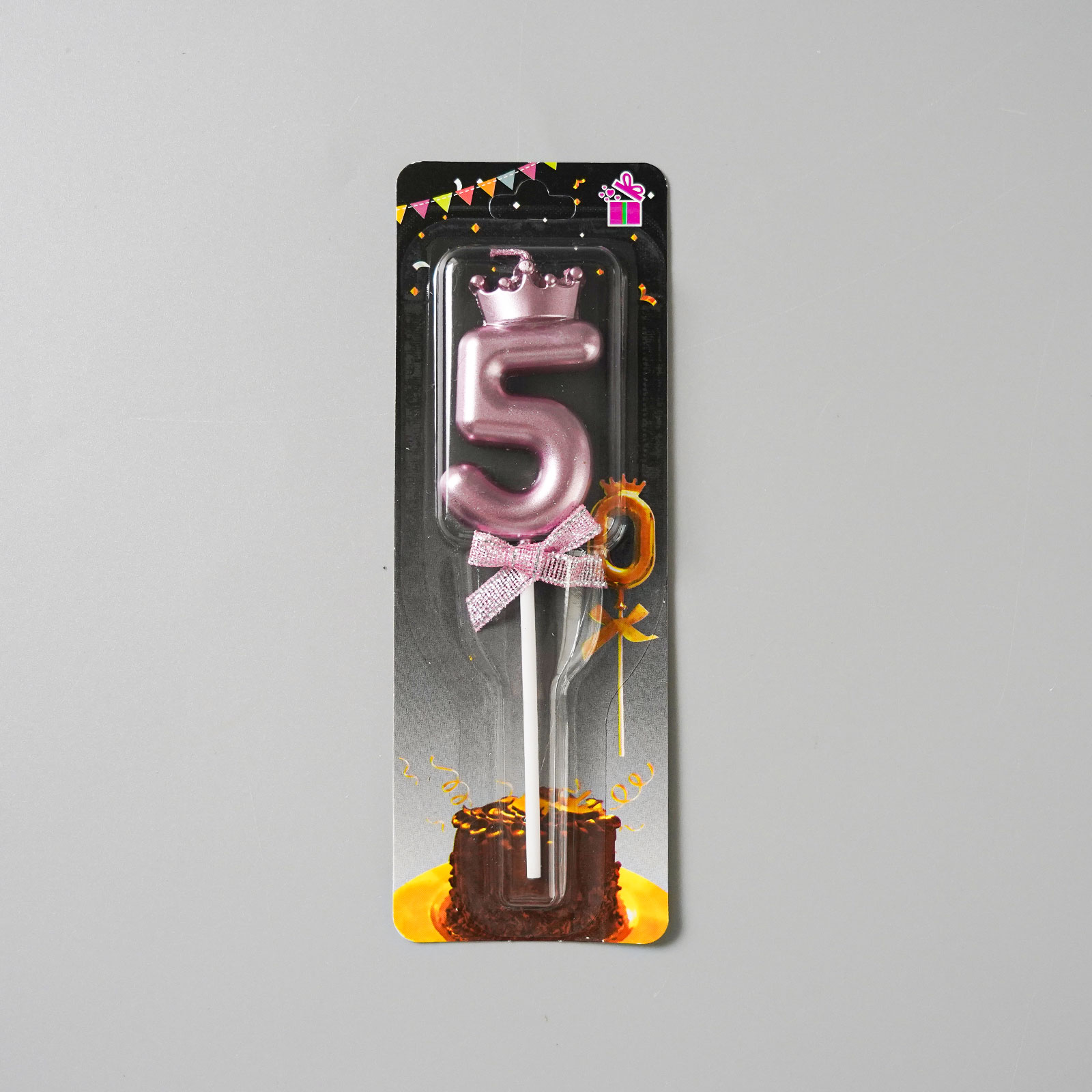 Dortová svíčka s "korunkou" ružovo-zlatá č.5