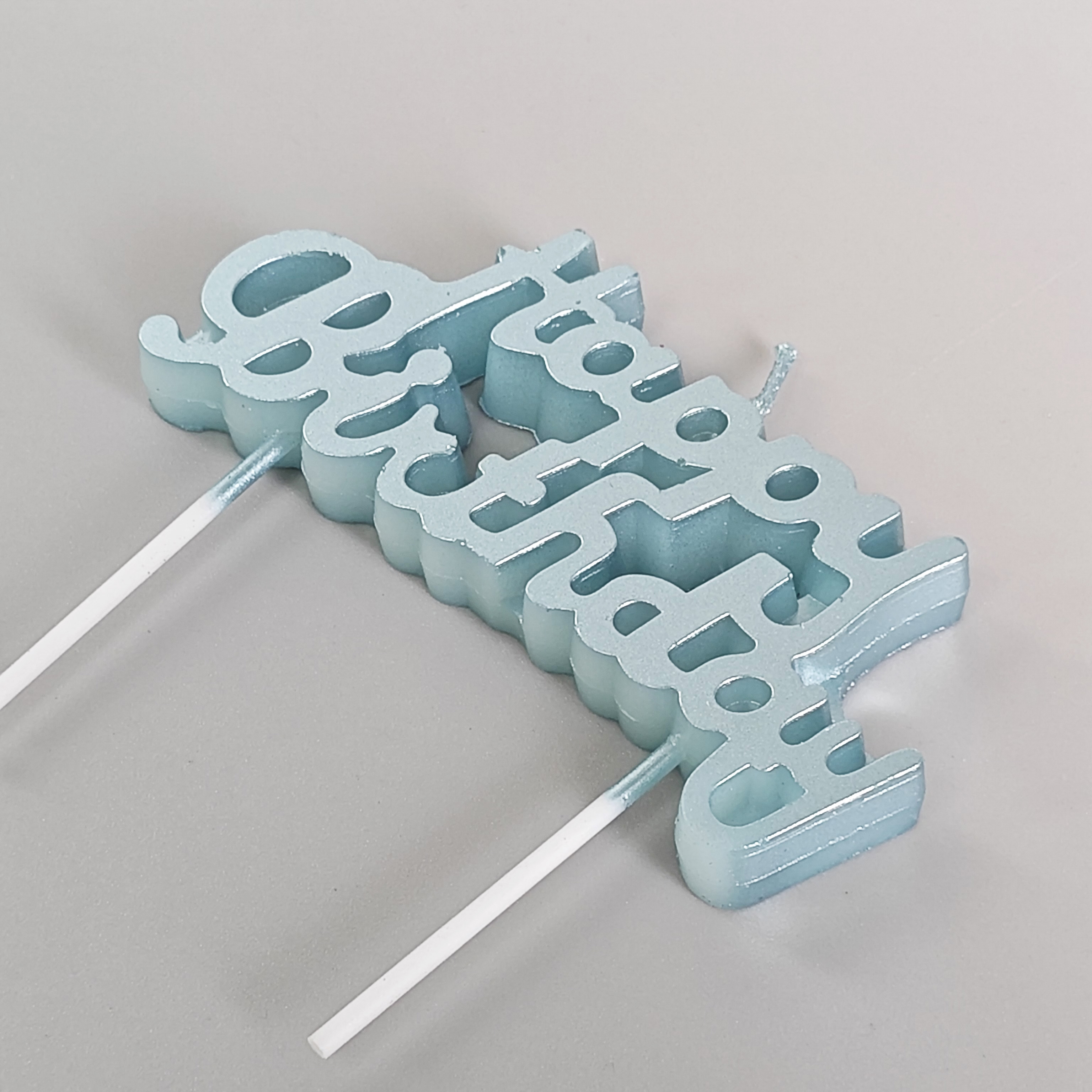 Narozeninové svíčky na dort, které mají modrý nápis ”Happy Birthday”. Svíčky skvěle ozdobí váš narozeninový dort. Vhodné na jakýkoliv druh oslavy nebo party. Rozměr:8x3cm Svíčka je nejedlá dekorace.