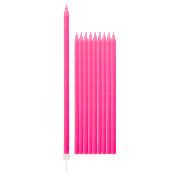 Dortové svíčky růžové 10 ks 15,5 cm Narozeninová oslava bez dortu? To určitě ne! A na každý dort patří dortové svíčky, ať je může oslavenec sfouknout a něco si přát. Proto právě u nás najdete nejširší nabídku narozeninových svíček na trhu. Samozřejmě můžete místo svíčky na dort zvolit dortovou fontánu. Při přípravě slavnostního dortu jistě oceníte nabídku pomůcek na pečení. Pokud máte raději muffiny, můžete si vybrat z mnoha variant košíčků na muffiny. Při výzdobě slavnostního stolu doporučujeme využít stolové šerpy. Jsou opravdu elegantní a v mžiku vykouzlí slavnostní atmosféru. Samozřejmě nesmíte zapomenout na svíčky, ubrousky anebo na kapsy na příbory.