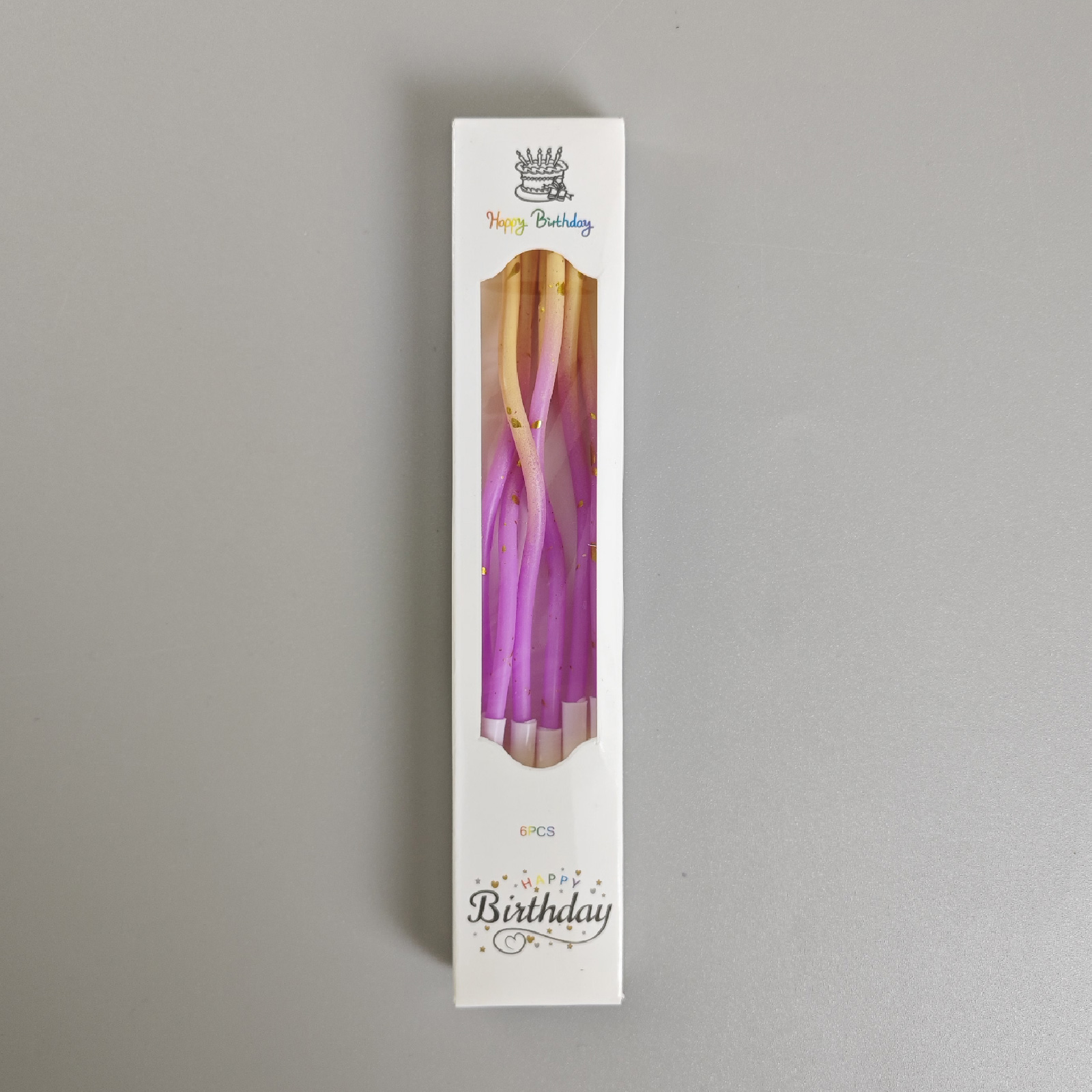 Dortové svíčky zakroucené fialovo-žlutá se zlatem 6ks