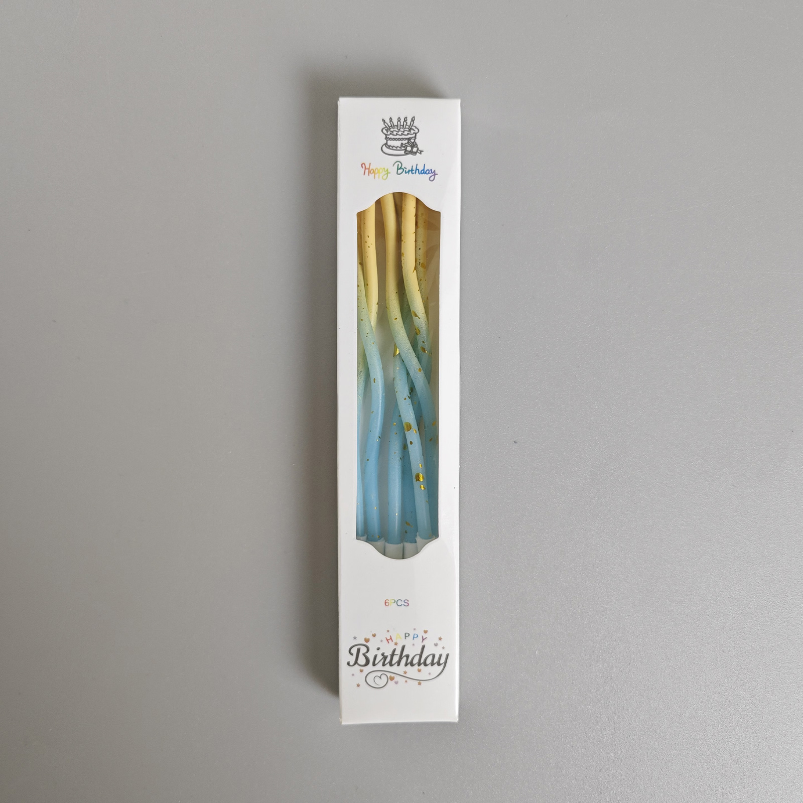 Dortové svíčky zakroucené modro-žlutá se zlatem 6ks