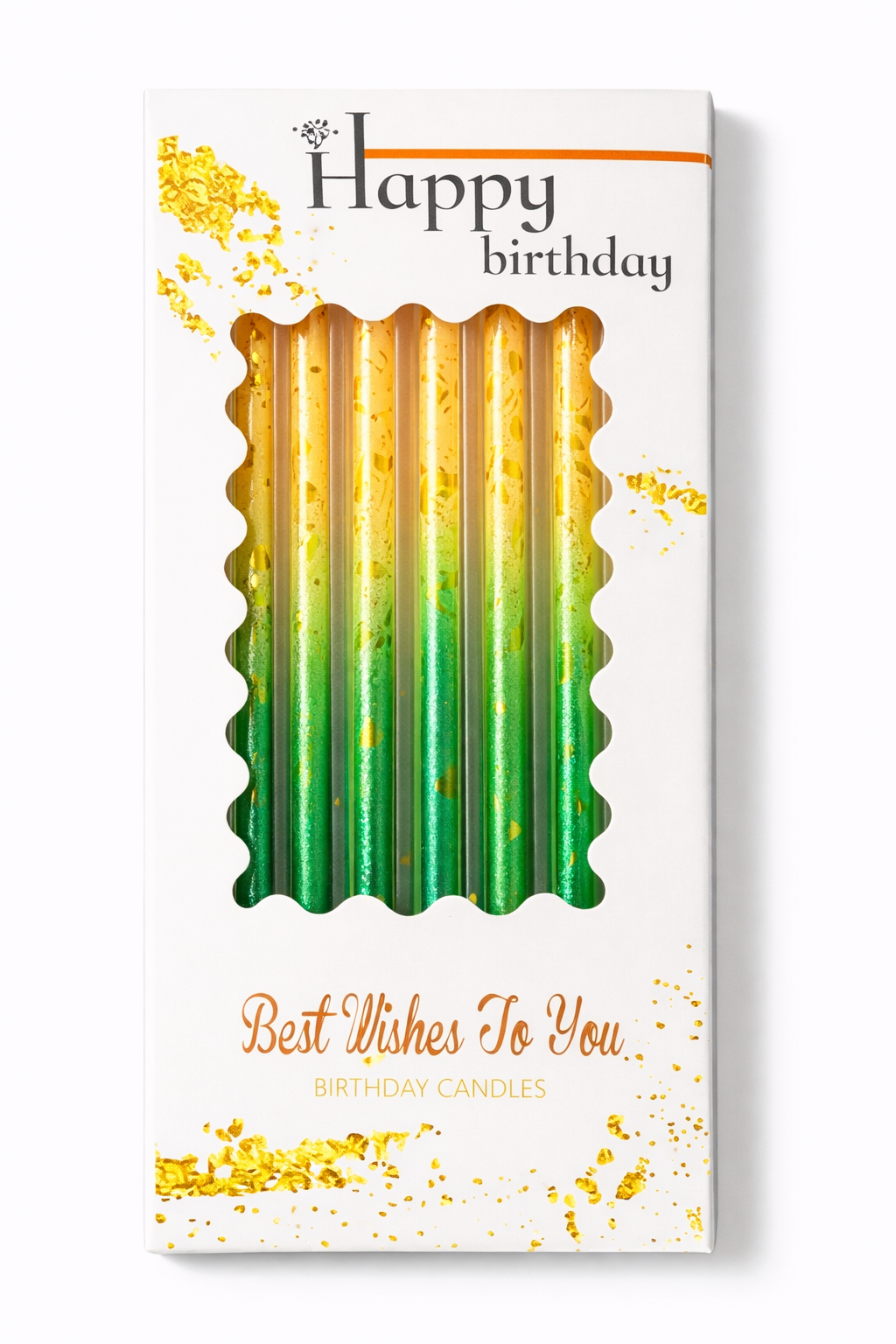 Dortové svíčky zeleno-žlutá se zlatem 6ks Svíčka je nejedlá dekorace. V balení je 6ks
