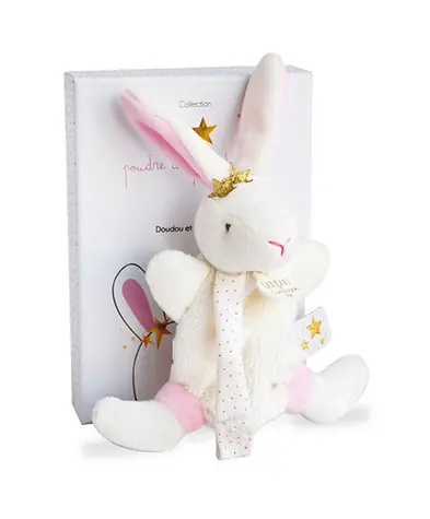 Doudou Dárková sada - Hračka s úchytem na dudlík králíček 15 cm