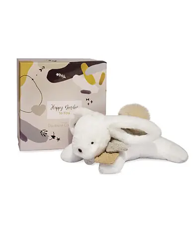 Doudou Dárková sada - Plyšový králíček s béžovou bambulkou 25 cm