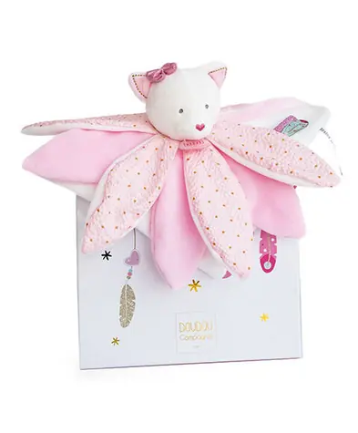 Doudou Dárková sada - Plyšový muchláček růžová kočka 26 cm / od 0 let