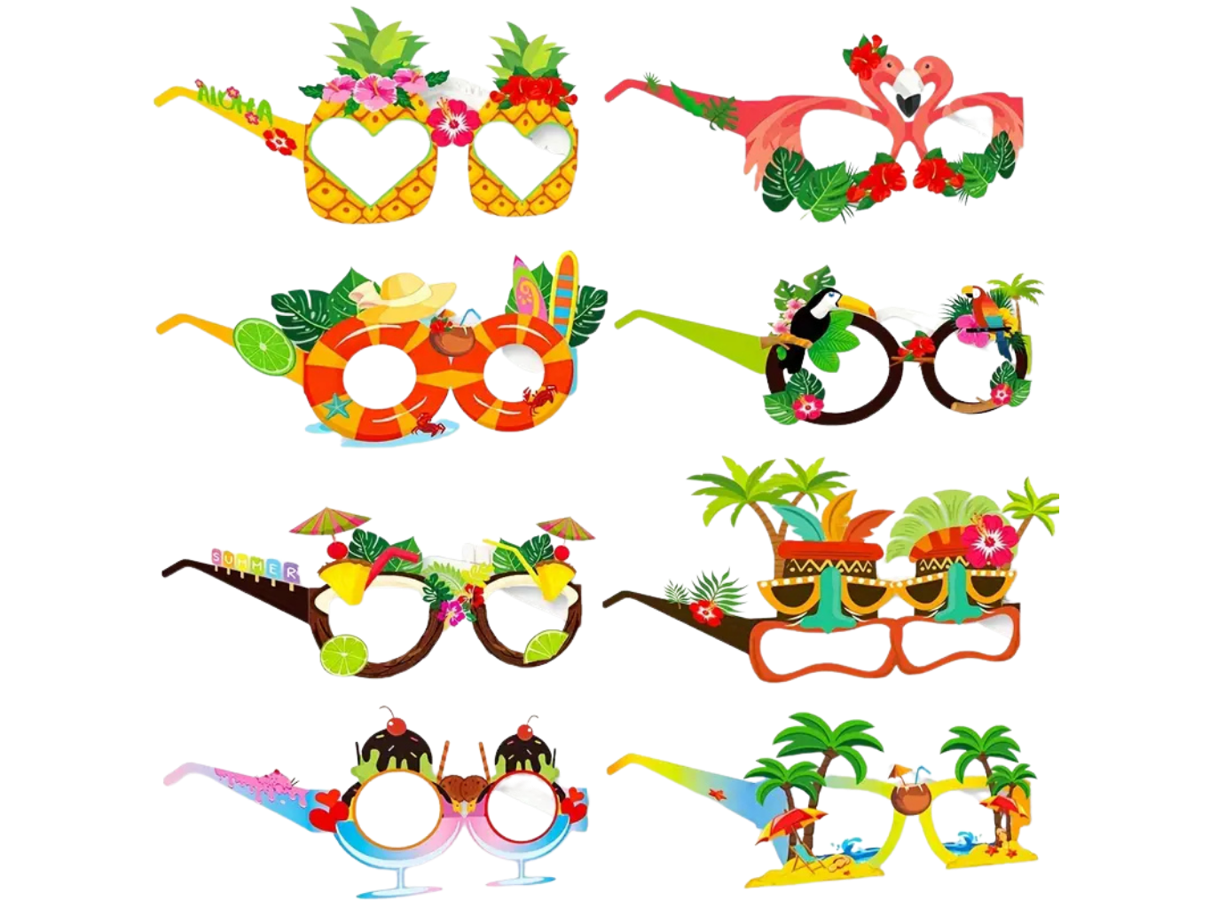 Vnes do každé oslavy špetku havajského slunce! 🌺 Tyhle parádní havajské brýle z papíru jsou ideálním doplňkem na karneval, letní párty, narozeniny nebo tematické večírky. Jsou lehké, veselé a okamžitě vytvoří tu správnou tropickou atmosféru.