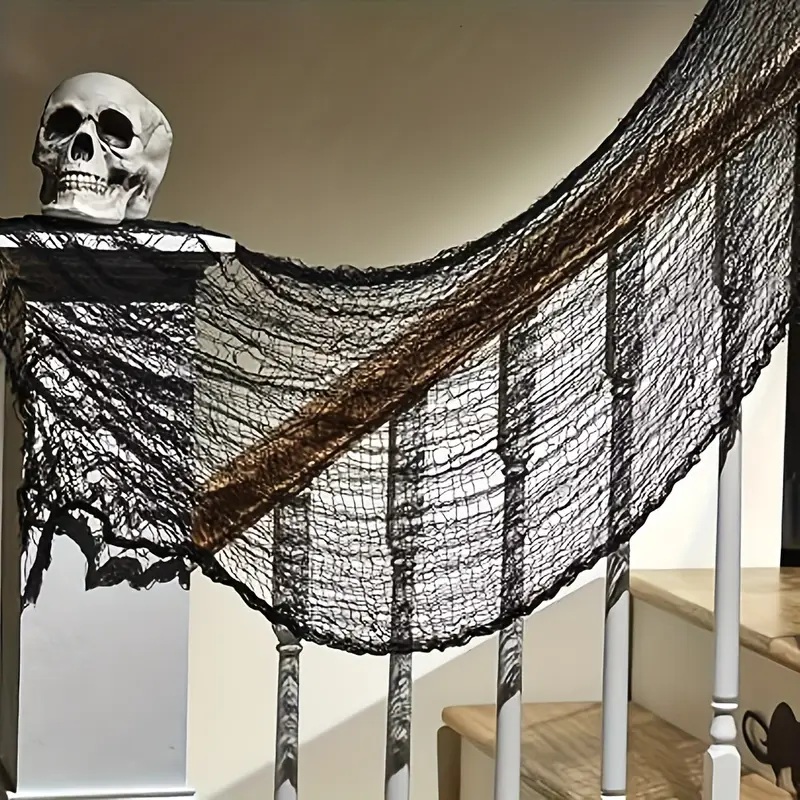 Můžeš ho zavěsit na zdi, přehodit přes stůl, omotat kolem zábradlí nebo vytvořit temné zákoutí plné tajemství. Černý odstín působí jako oprýskaný závoj z dávných dob – zaručeně navodí mrazivou atmosféru!