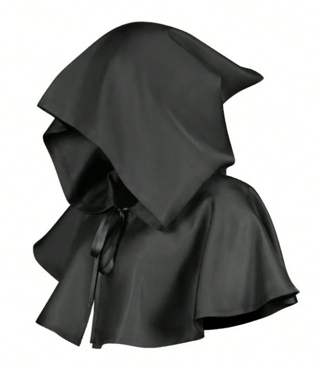 Černá kápě z lehkého polyesteru dodá vašemu outfitu ten správný šmrnc – ať už míříte na karneval, temný večírek nebo stylovou narozeninovou oslavu.