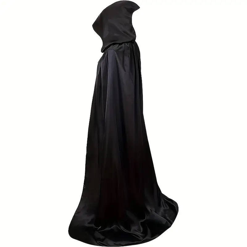 Černý plášť o délce 180 a 200 cm udělá dojem na každé párty – ať už se měníš v čaroděje, upíra nebo záhadnou postavu z říše temna. Lehký materiál zajišťuje pohodlné nošení po celý večer, šňůrka u krku pro snadné zavázání.