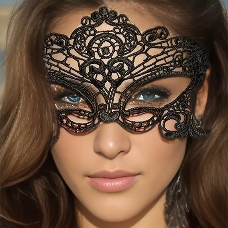 Elegantní krajkový vzor jemně zvýrazní tvé oči a promění tě v královnu každé maskované párty.