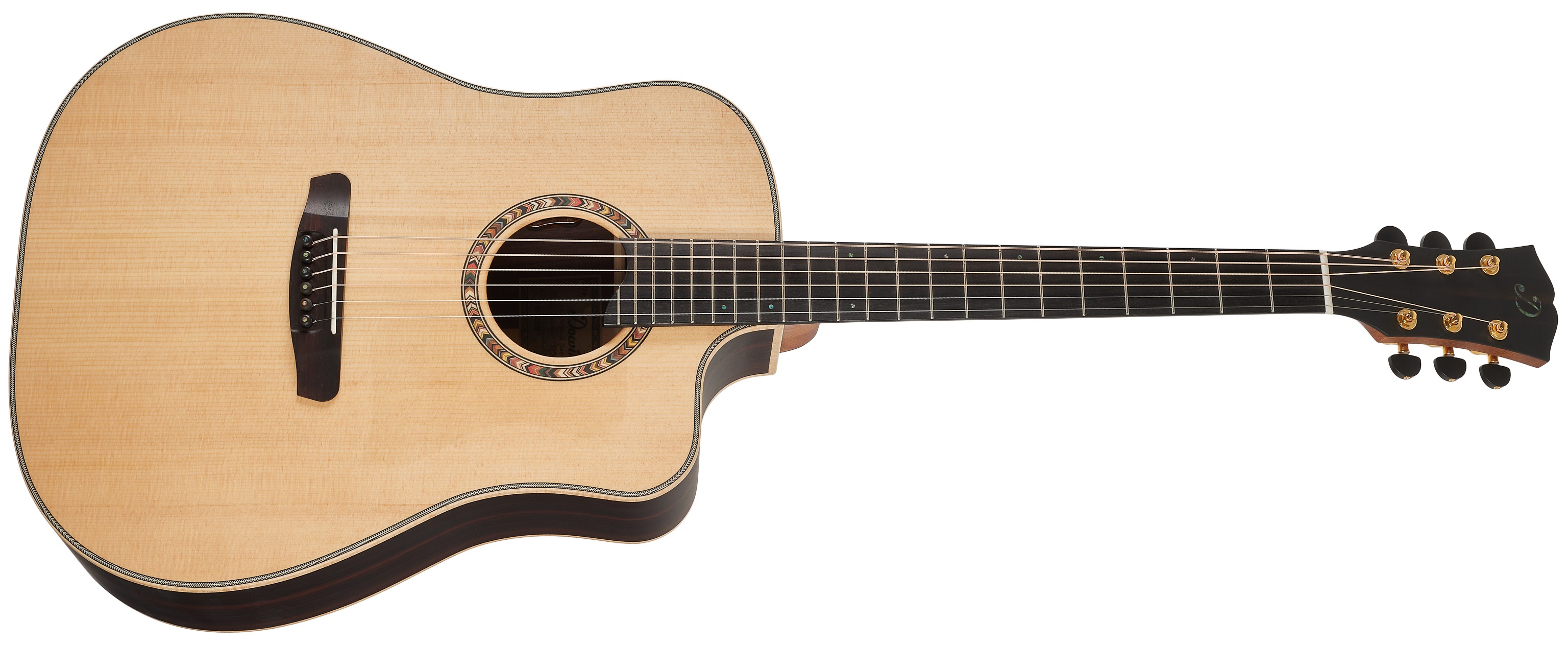 Elektroakustická kytara Zboží jeví známky opotřebení v důsledku častějšího používání nebo dlouhodobějšího vystavení zboží na prodejně (viz foto). Dowina Cabernet DCE z řady Vintage je elektroakustická kytara s populárním tělem typu Dreadnought. Díky celomasivní konstrukci z kvalitních dřev nabízí plný vyzrálý zvuk, který potěší hráče všech úrovní pokročilosti. Přední deska kytary je vyrobena z masivu smrku Sitka, zadní deska a luby jsou zhotoveny z masivu indického palisand