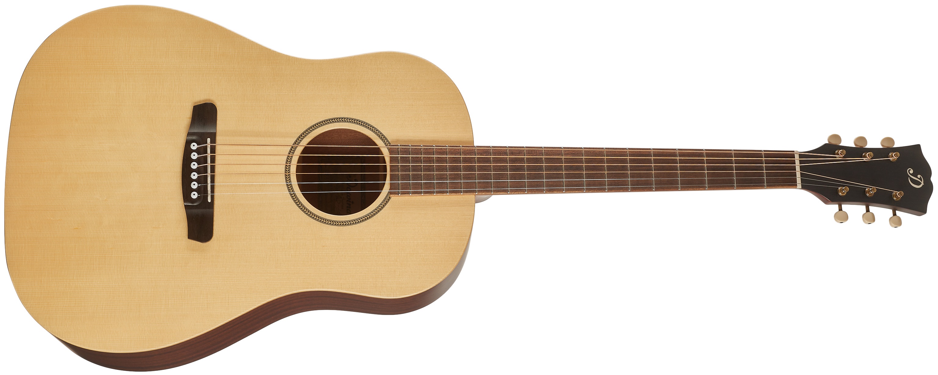 Akustická kytara Akustická kytara Dowina Pinot RSD je Dreadnought s kulatými rameny (Round-Shoulder) a saténovým finišem. Přední deska nástroje je zhotovena z masivu alpského smrku, zadní deska a luby jsou vyrobeny z vrstveného afrického mahagonu. K mahagonovému krku je přilepen hmatník ze dřeva pau ferro osazený dvaceti pražci. Struny jsou uchyceny v otevřených ladicích mechanikách Vintage Copper Grover a kobylce z pau ferro. Stylové zpracování podtrhuje rozeta ve vzoru rybí kosti (Herringbone). Historie s