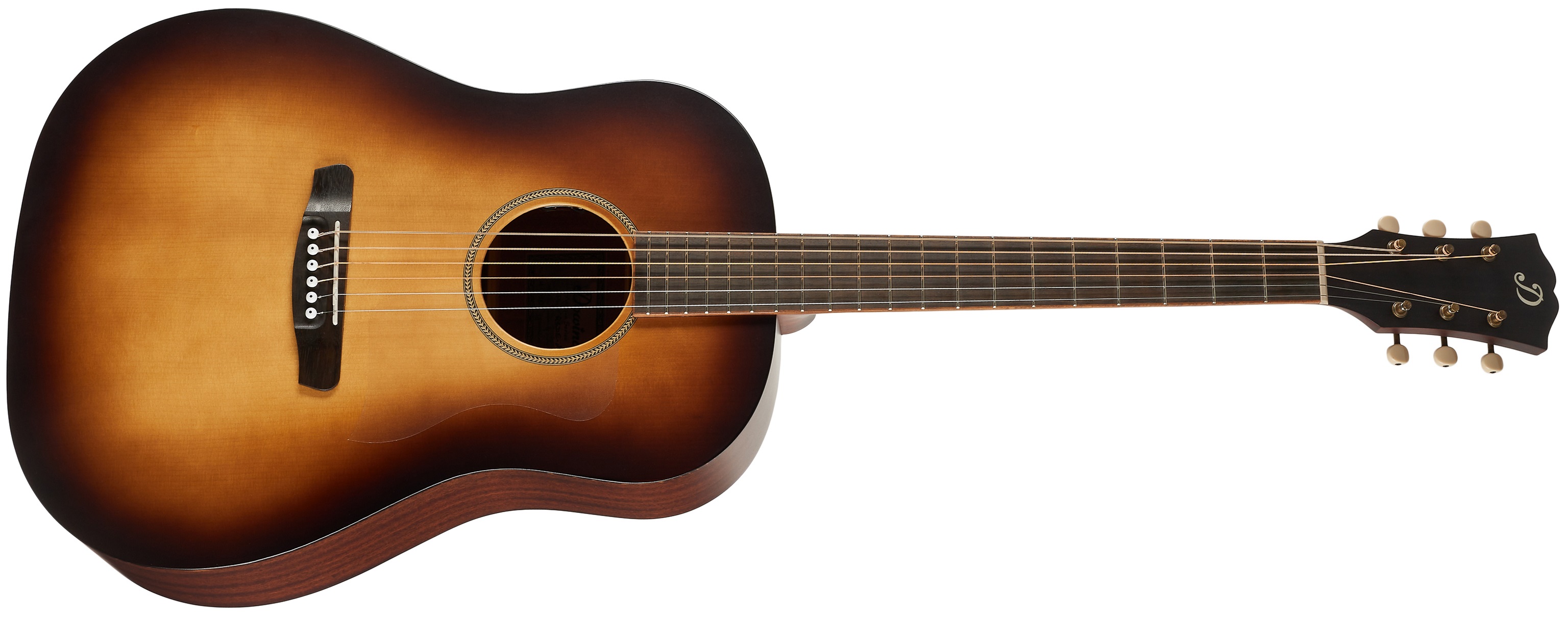 Elektroakustická kytara Elektroakustická kytara Dowina Pinot RSDE-SB je Dreadnought s kulatými rameny (Round-Shoulder). Přední deska nástroje je zhotovena z masivu alpského smrku, zadní deska a luby jsou vyrobeny z vrstveného afrického mahagonu. K mahagonovému krku je přilepen hmatník ze dřeva pau ferro osazený dvaceti pražci. O ozvučení kytary se stará preamp L. R. Baggs EAS-VTC s podkobylkovým piezo snímačem a ovládacími prvky Volume a Tone decentně umístěnými do ozvučnicového otvoru nástroje. Struny jsou