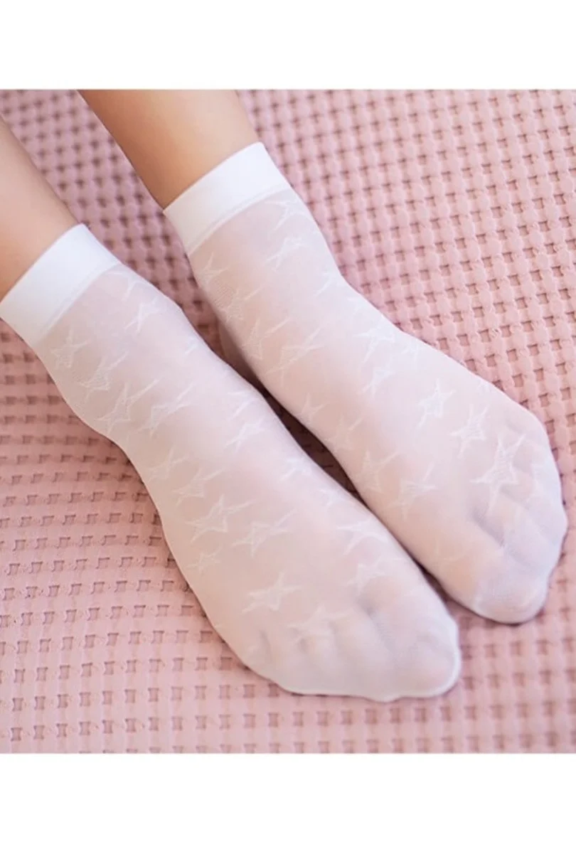 dívčí vzorované ponožky 20 DEN, vyrobené z pletené příze pro větší odolnost proti vytahování. Rampičkové prsty. Celá ponožka pokrytá hvězdičkovým vzorem. .