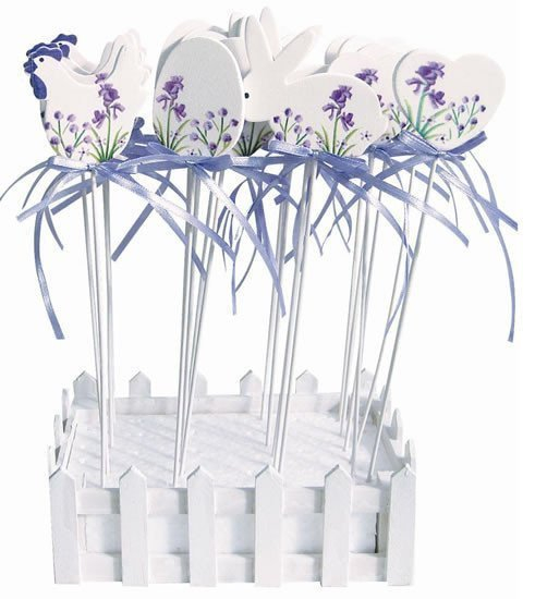 Dřevěná dekorace s levandulovým motivem k ozdobení květináče. Mix motivů - není možnost výběru.