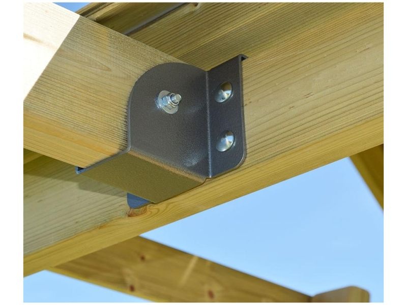 Dřevěná hrací věž pro děti je vyrobena z certifikovaného borovicového dřeva. Součástí je skluzavka, dvě houpačky, piknikový stůl a lezecká stěna, což zaručuje hodiny zábavy. Pro děti od 4 let.