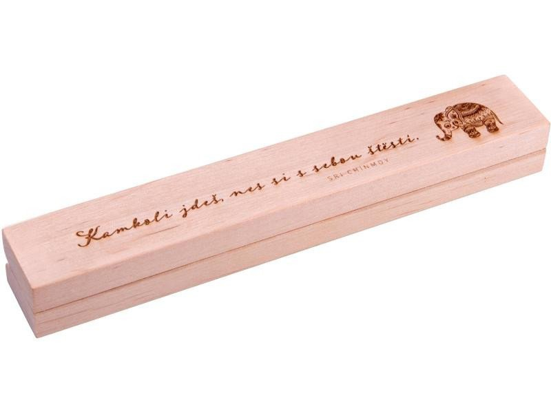 Dřevěná krabička na propisku "Kamkoliv jdeš, nes si s sebou štěstí" - Sri Chinmoy