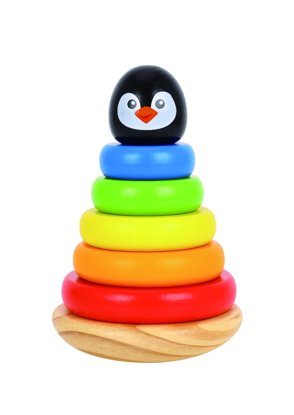 Dřevěná skládací věž se skládacími kroužky ve veselých barvách v designu tučňáka pro menší děti, které si s ní užijí spoustu zábavy. V balení najdete podstavec s kolíkem a barevná dřevěná kolečka, ze kterých děti vytvoří věž. Dřevěné kolečka rozvíjí u dětí jemnou motoriku, koordinaci ruky a oka a jejich trpělivost.