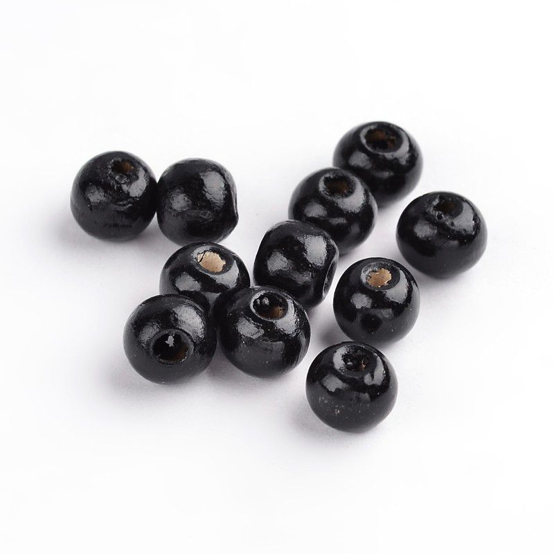 Dřevěné korálky v černém provedení o průměru 7 ~ 8 mm a hloubce 5,5 ~ 6,5 mm s velikostí průvleku 1,5 ~ 2,5 mm. Korálky jsou vyrobeny ze dřeva a jsou barveny do požadovaného odstínu. Dřevěné korálky mohou mít nepravidelný tvar s nezačištěným průvlekem, případně některé části korálku mohou být zploštělé. Korálky prodáváme po deeseti kusech.