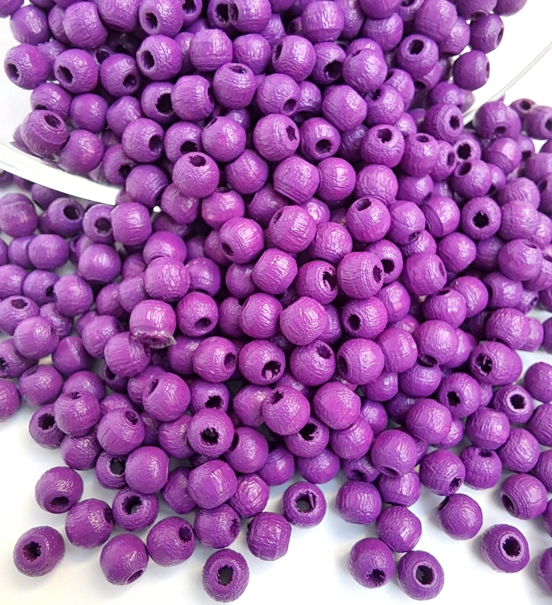 Dřevěné korálky – fialové, 4 mm (10 ks) Krásné dřevěné korálky ve fialovém provedení, které zaujmou svým přirozeným původem a precizním zpracováním. I přes přírodní materiál jsou korálky výjimečně jednotné a kvalitní. Průměr: 4 mm Průvlek: ~ 1 mm – vhodný pro širokou paletu návlekových materiálů Materiál: dřevo – barveno bezpečnými barvami určenými na dětské hračky Balení: 10 kusů Původ: Vyrobeno v České republice Ideální pro výrobu přírodních šperků, dětských projektů, dekorací nebo macramé. Přírodní krása a kvalita v jednom!